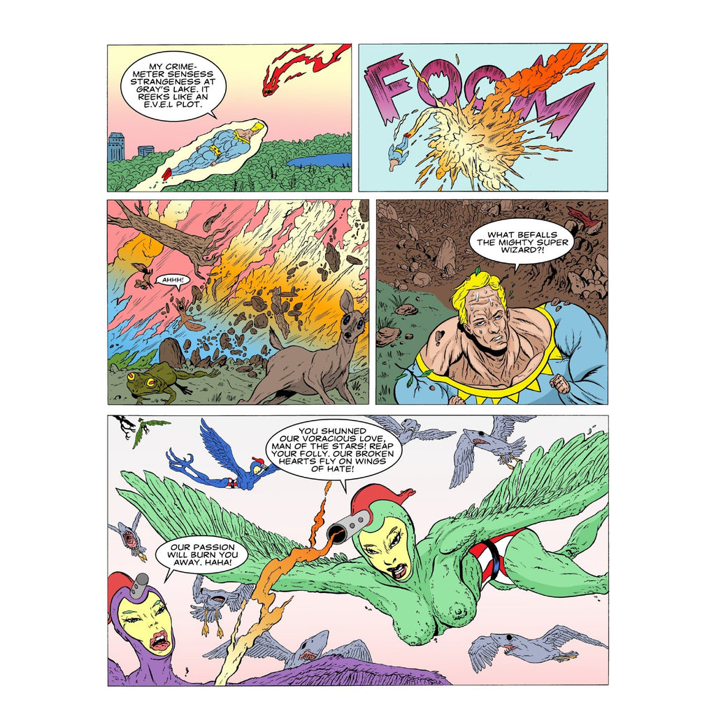 The golden age hero, created by Fletcher Hanks in 1939, will once again fight evil in an oversized issue by the Coats brothers that captures the bizarreness of the original strip and pushes it into stranger, more heightened realms of distortion and violence.