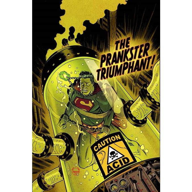 It’s said that the sun is always shining on the city of Metropolis...but lately a shadow has fallen. This shadow has a name, and it’s on the lips of the terrified citizens of the city of tomorrow tonight...it’s the horrible new form of the Prankster! The all-new, mysterious Prankster was the deadliest assassin in the DC Universe, someone with a perfect record of kills...until Superman saved one of his victims. And that makes the Man of Tomorrow his next target.