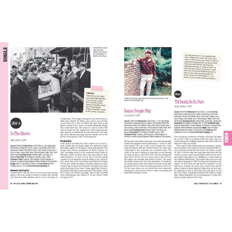Take a deep dive into Dolly Parton’s almost 60 year career with this complete guide featuring more than 400 photographs, little-known stories behind each album, and behind-the-scenes details about the recording of each track, the musicians involved, and the songwriting process.