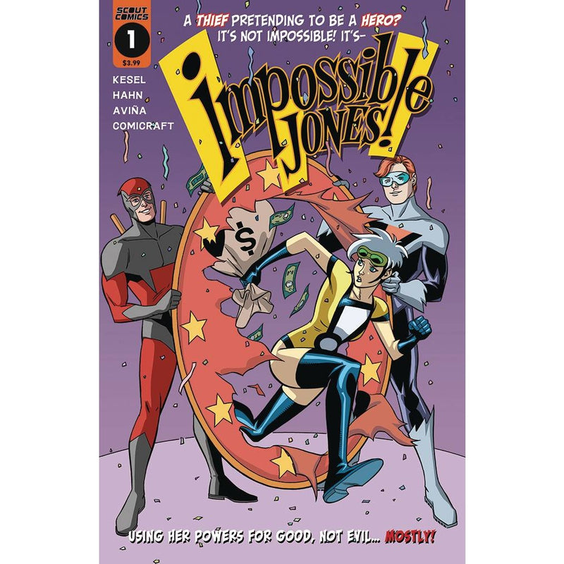 Explosive first issue! The grin gritty origin of comics' newest sensation! A thief gets powers, is mistaken for a superhero... and runs with it! With no intention of giving up her criminal ways, mind you! (With these powers? You crazy?!) All she has todo is fool all of the people all of the time! It's not impossible - it's Impossible Jones! Full throttle thrills by Karl Kesel (Harley Quinn) and David Hahn (Batman '66).
