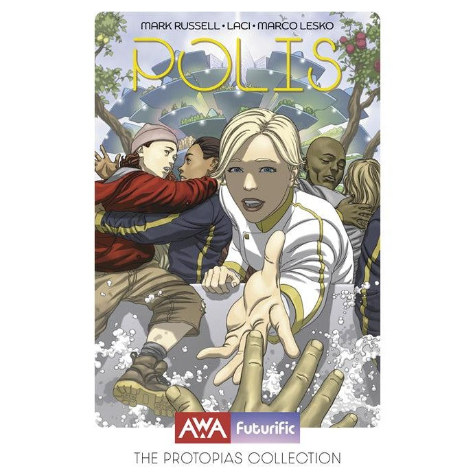 In this double-sized debut issue, “Polis,” Eisner and Ringo Award-winning writer Mark Russell (Not All Robots, Batman: Dark Age) spins the tale of Miragua, a floating city populated by refugees that has become a beacon of hope in a world beset by climate disaster and civil war. Follow Florida teen Natalie as she emigrates from the only home she’s ever known in search of a better life aboard Miragua.